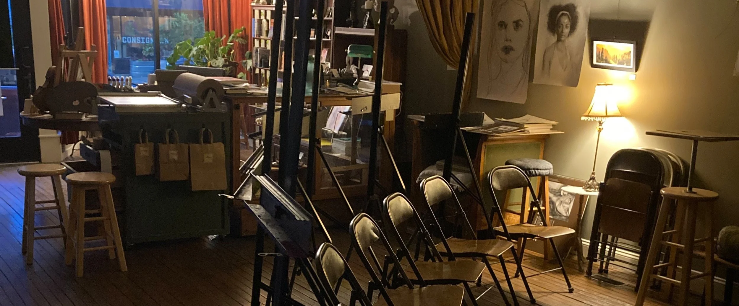Each intern role has a unique focus, but all share in the core tasks of studio life: helping promote, set up and clean up for classes, workshops, and exhibitions, assisting with projects, events, our artist supply shop Reliquary, and pitching in on monthly deep-cleaning days. The program is designed for artists who are serious about building skills and a career as a fine artist while being a part of a supportive, working studio environment.